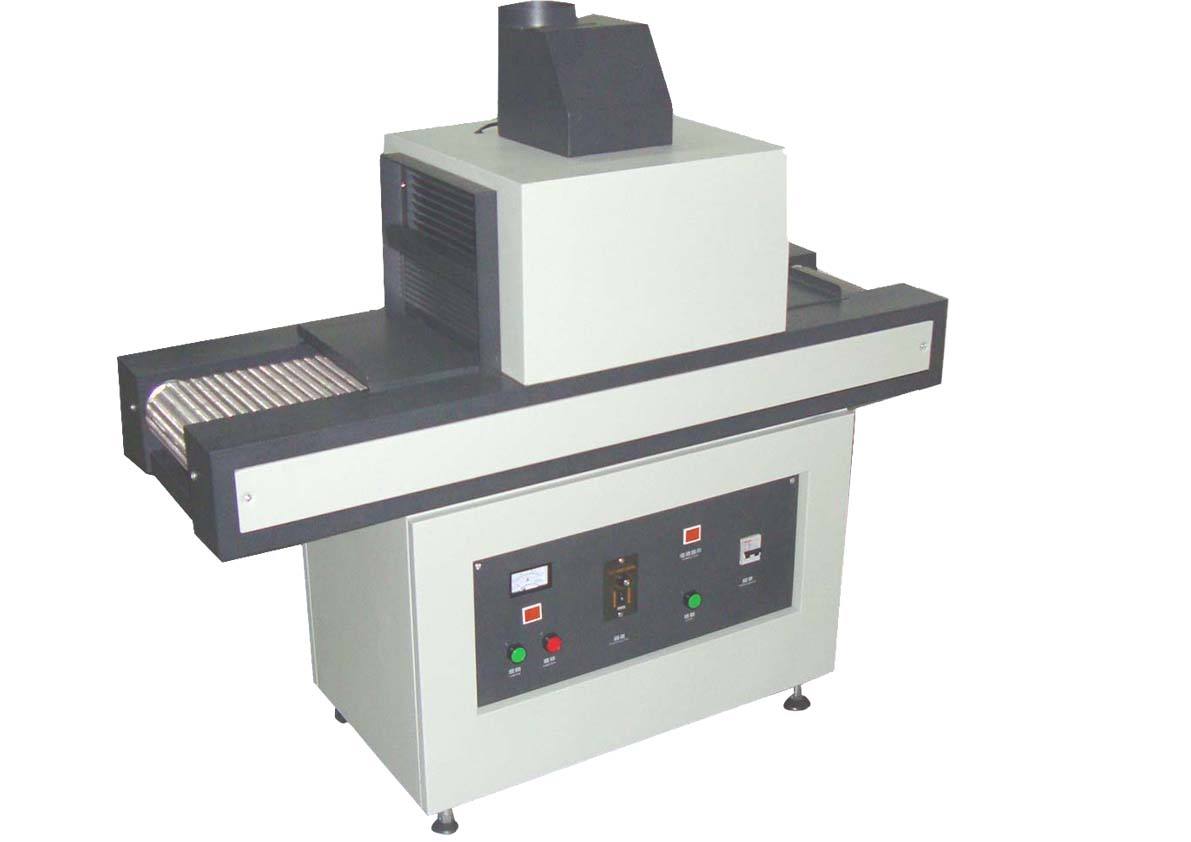 1 本產品采用封閉式結構、輸送帶傳送方式,使用過程中,可根據物件大小和材質不同,采用半光(3KW)或全光(6KW),可隨時調整輸送帶速度和UV燈與物件的照射距離,以提高物件的光固效果,機器上部裝有抽風系統,可隨時將光固室內的熱量排除,以延長燈管的使用壽命。